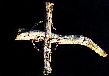 18" x 10 " scrub oak & antique barbed wire cross (sold)