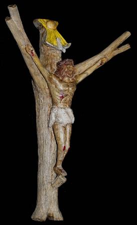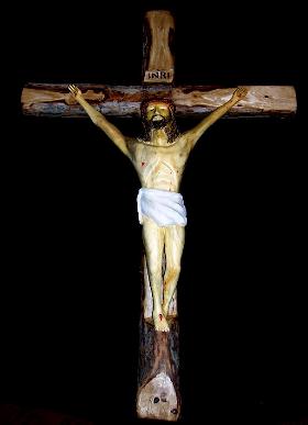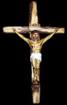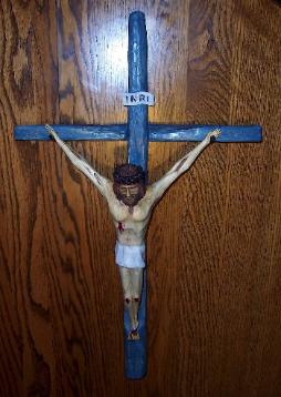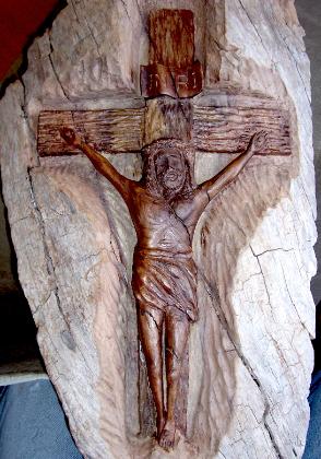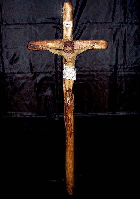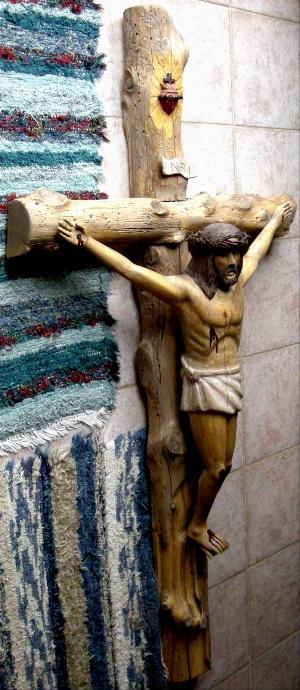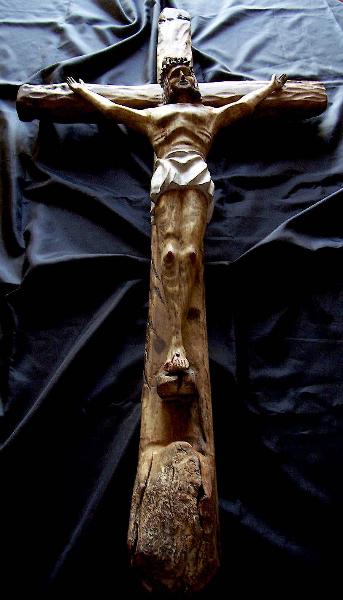 44" beetle-kill pine and aged cottonwood Crucifix, especially made for the San Antonio, CO Morada (not for sale)