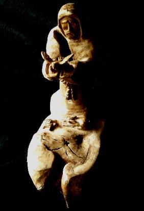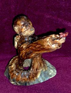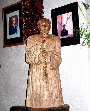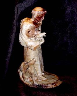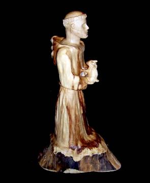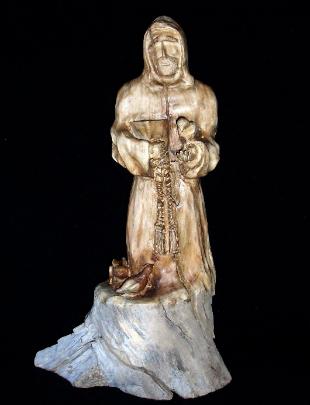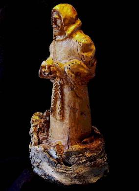 | 8" aged, hollow cottonwood St. Francis with catlinite bird, $375 (sold) |