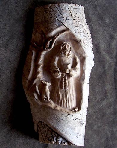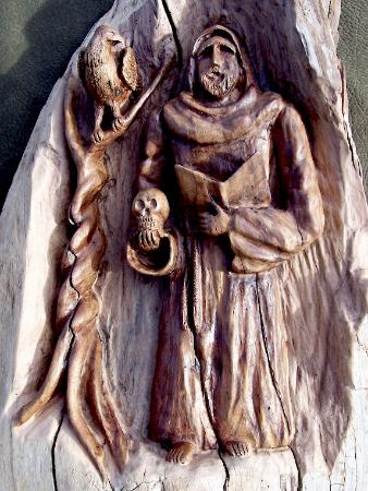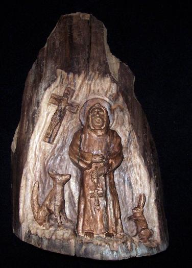 | 34"x 12" black walnut St. Francis relief with eagle and skull (sold) |