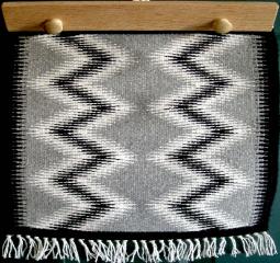 Joan's weavings vary from small mug rugs to